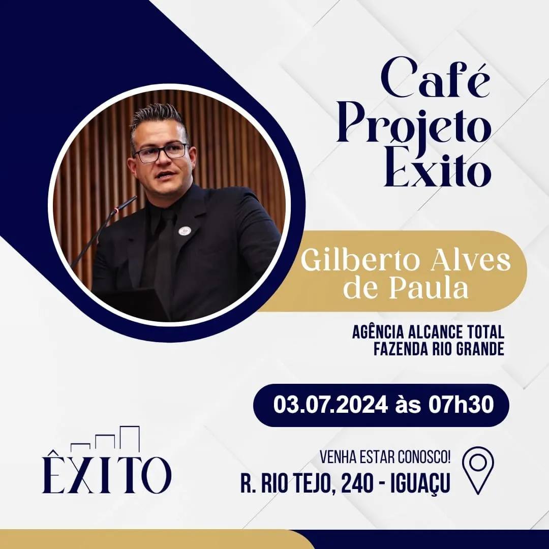 Gilberto Alves de Paula, fundador da Agência Alcance Total, foi convidado pela Comunhão Cristã ABBA de Fazenda Rio Grande para participar do Café Projeto Êxito, onde se reúnem empresários de toda região para ouvir uma palavra inspiradora além de se conectarem profissinalmente.